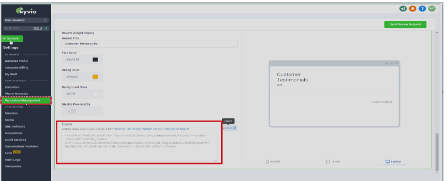 After creating all of these Google reviews, you can easily display them on your website. To do this, simply copy the highlighted code shown in the image below".
