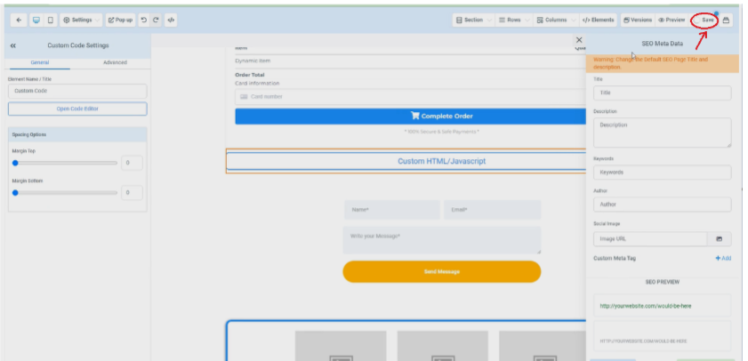 After selecting the custom HTML element, click on the "Save" button located in the top right corner of the image. You can then preview the changes by clicking on the "Preview" option next to the save button.