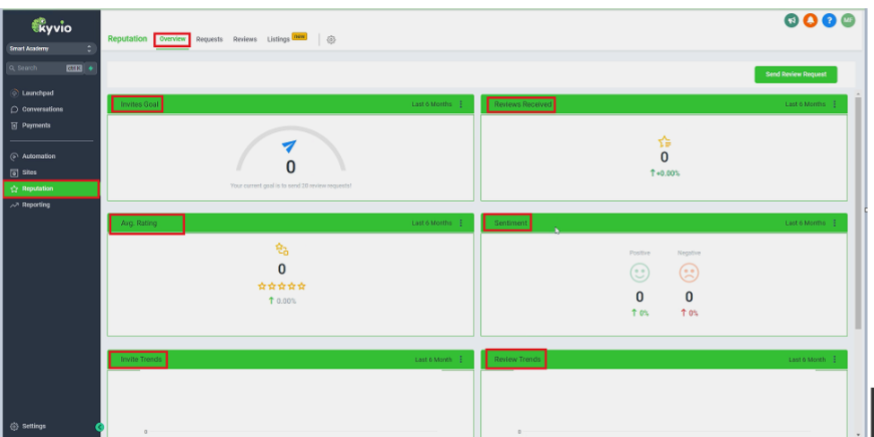 When you're finished here, you can easily access and replicate your Google reviews. Currently, there are no reviews in this location, which is why you can't see them. However, once you start receiving Google reviews, you'll be able to track your goals, see the number of positive and negative reviews, and your overall rating. This feature will help you keep track of your Google reviews within the Reputation section.